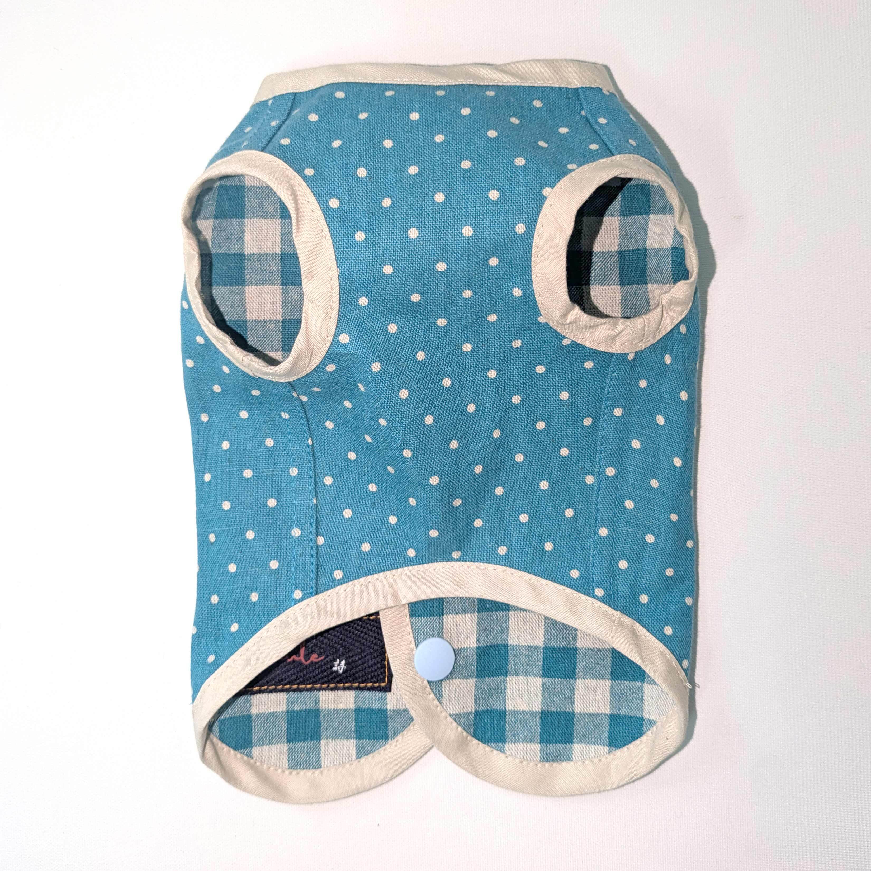 リネン・リバーシブル チェック/ドット 青(祭サイズ)