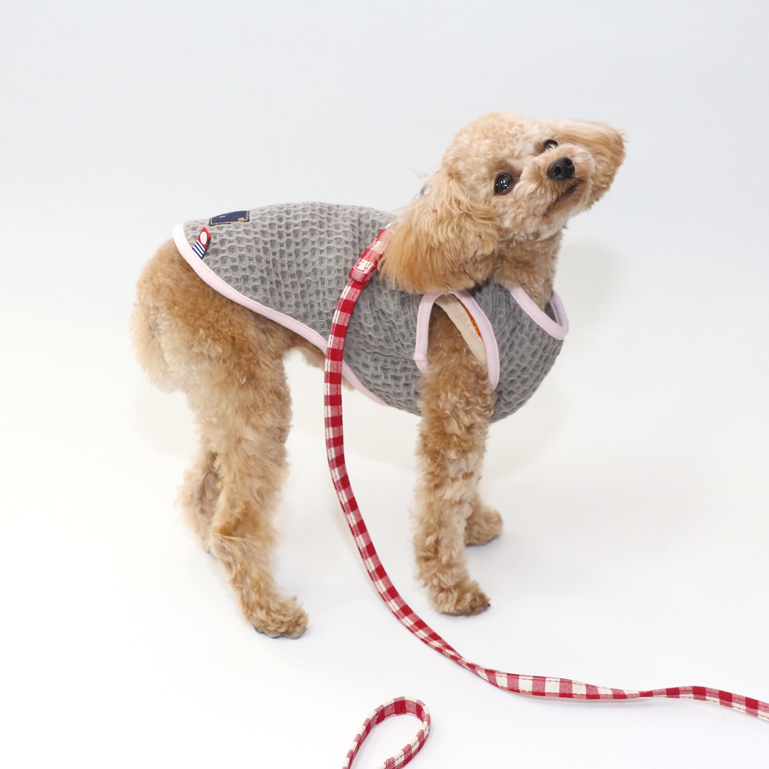 本来伸縮性のないタオル生地を独自のワッフル編みにする事で伸縮性を持たせ、脱着、運動時に愛犬にストレスを与える事がありません。