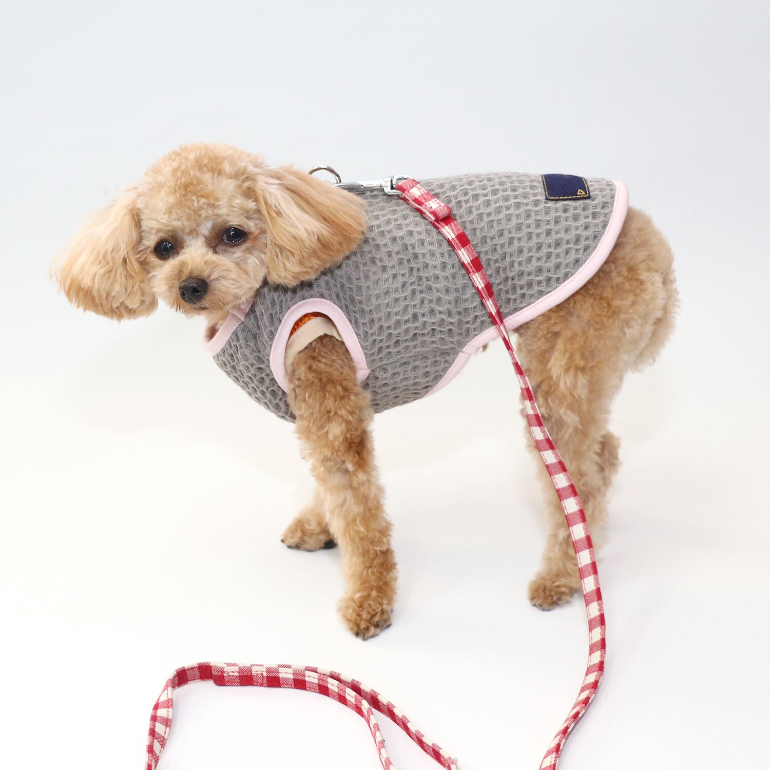 ハーネスの上から着用できるようにリード用の穴付きです。